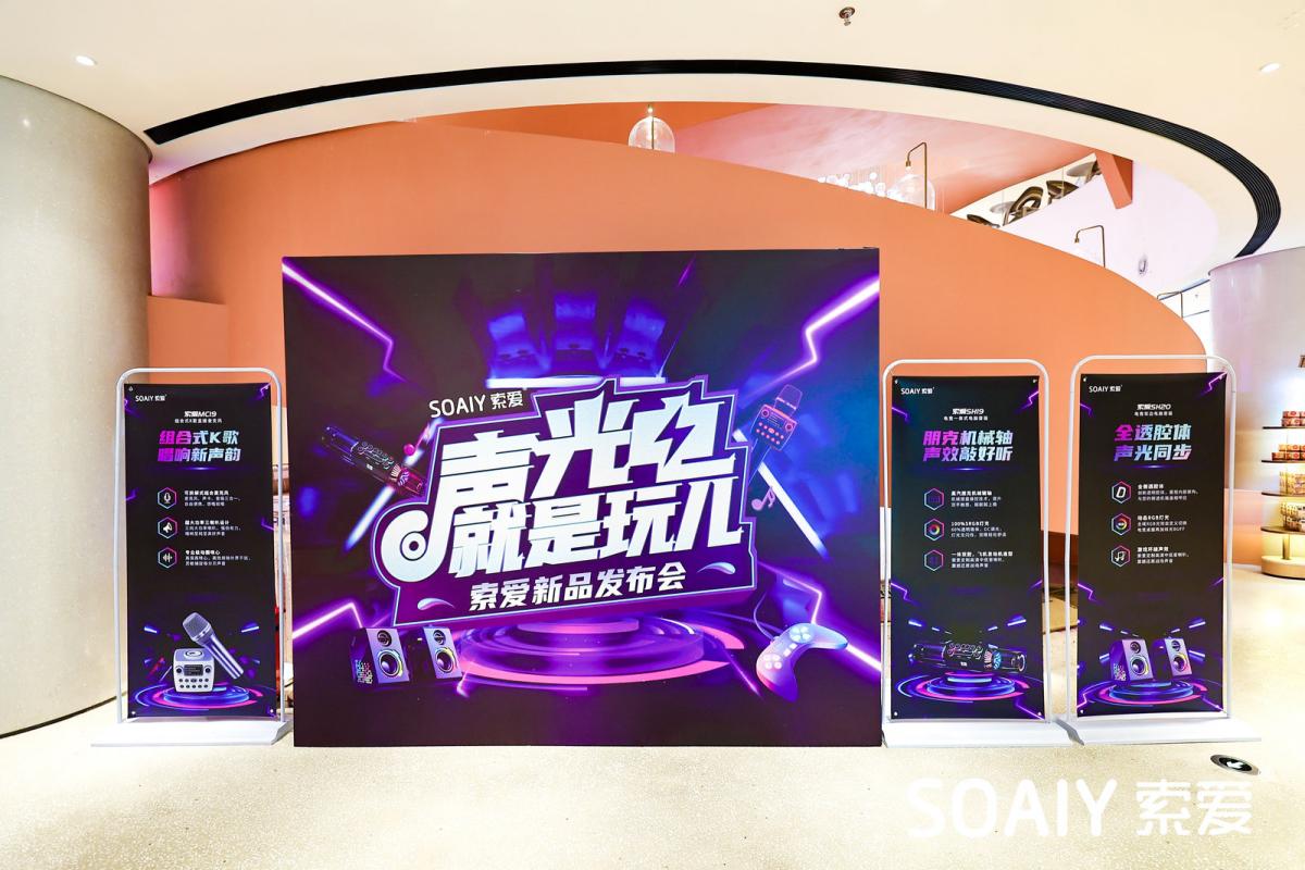 炫目的燈光、青春涌動的音浪…在洋溢著動感活力的大會現(xiàn)場,聲、光、電的元素被運用到淋漓盡致。隨著索愛SH19音箱、索愛 SH20音箱、索愛MC19組合式K歌直播麥克風三款重量級新品的隆重發(fā)布,品鑒會氛圍被推向高潮,與會媒體嘉賓爭相體驗,對新品帶來的潮酷感交口稱贊。