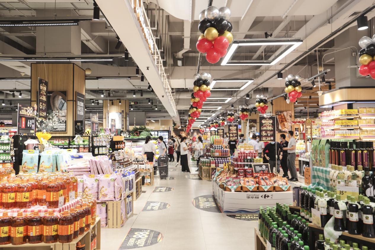 家樂福社區(qū)品質(zhì)生活中心經(jīng)營面積約3000㎡,主打中高端、進口、網(wǎng)紅商品,門店有近15000種商品。