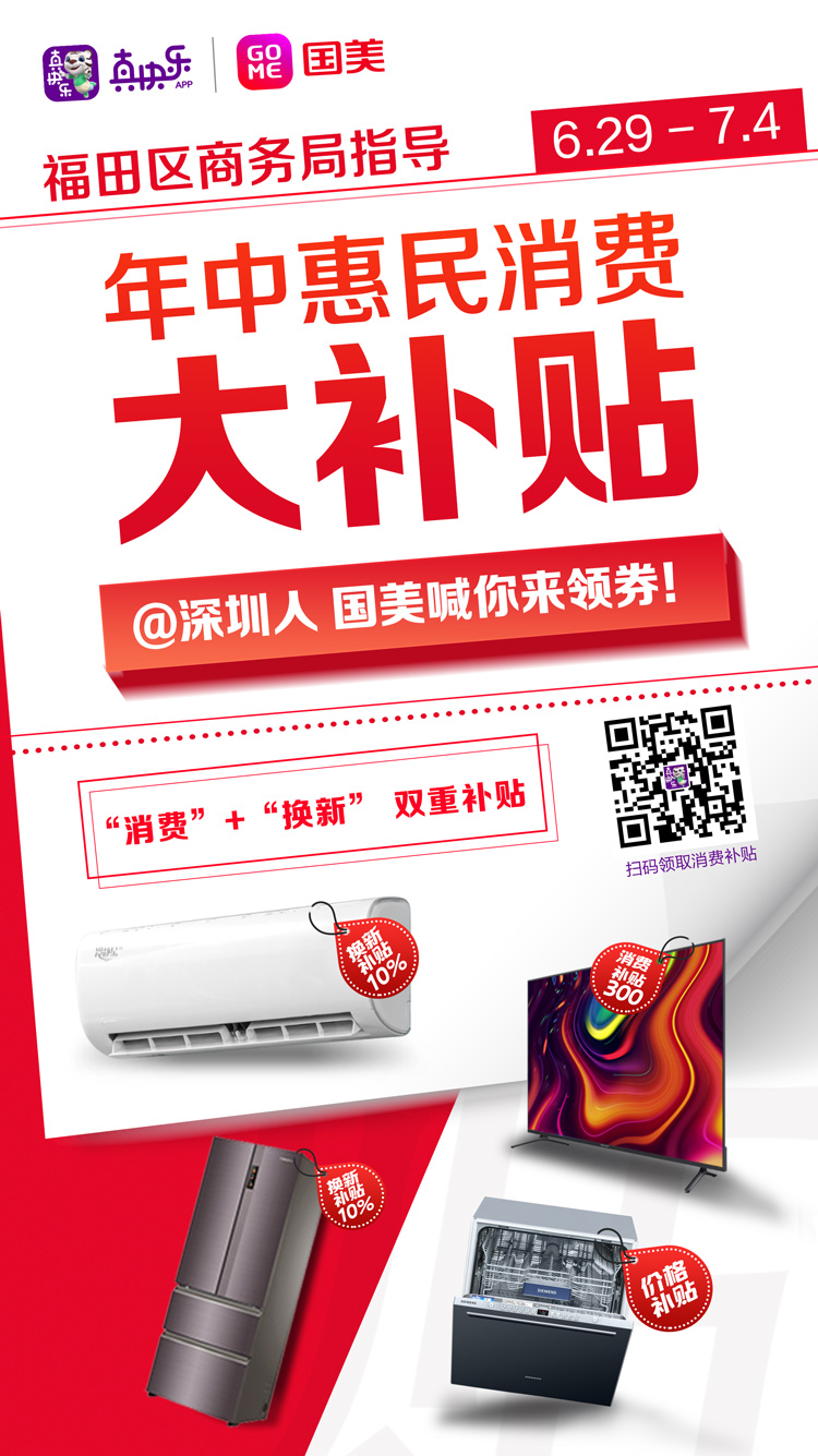 據(jù)悉,為獻禮建黨100周年,在深圳市福田區(qū)商務(wù)局的指導下,深圳國美和“真快樂”APP誠意滿滿的推出了“年中惠民消費大補貼”活動,國美這次“年中消費大補貼”將從6月21日起一直延續(xù)到7月4日,4500萬補貼發(fā)放,助力深圳地區(qū)消費者升級品質(zhì)生活。而且所有活動商品原有低價基礎(chǔ)上進行補貼直降,還有超多驚喜好價等你來搶,此波羊毛絕對放心薅,一起來看看吧!