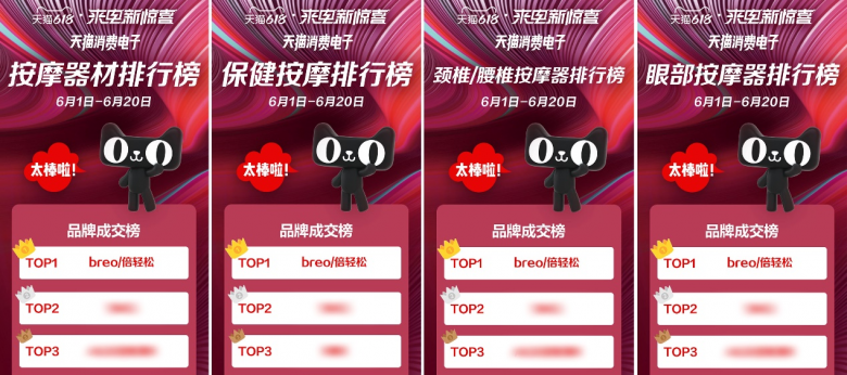 倍輕松的產(chǎn)品地位從創(chuàng)新、科技上很好地體現(xiàn)出來(lái),而更重要的是在消費(fèi)市場(chǎng)上,倍輕松仍占據(jù)了便攜式按摩器行業(yè)的重要份額。自倍輕松宣布肖戰(zhàn)成為全球代言人以來(lái),這家21年高端按摩器品牌在線上銷售數(shù)據(jù)十分優(yōu)異,在目前中國(guó)購(gòu)物網(wǎng)站巨頭的天貓、京東平臺(tái)榮獲多個(gè)品類排行榜第一。在618這個(gè)重要的消費(fèi)日節(jié)點(diǎn),倍輕松輕易獲得京東開門紅,僅4天就達(dá)到全網(wǎng)銷售額過億的成績(jī)。不僅在線上,倍輕松布局的線下門店多達(dá)150+家,各大機(jī)場(chǎng)、高鐵站、shopping mall均可以看到倍輕松的身影。據(jù)官方數(shù)據(jù),倍輕松在2021年上半年天貓平臺(tái)榮獲眼部按摩器單品品類排行榜第一如此以來(lái),可以說(shuō)倍輕松是便攜式按摩器線上平的領(lǐng)軍品牌。