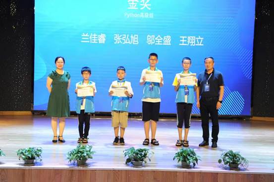 所有選手身體力行彰顯競賽精神,一絲不茍。Python初級組和高級組競賽中還產(chǎn)出一位雙料冠軍。來自青島賽場三年級的蘭佳睿選手,斬獲兩個組別冠軍,尤其在Python高級組競賽中最后一分鐘反超,擊敗多位高年級選手,編程實力強勁!