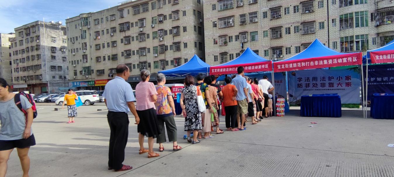 9月23日下午,寶龍街道在下井一村開展打擊非法集資、打擊非法傳銷、打擊侵犯知識產權與制售假冒偽劣商品進社區(qū)宣傳活動。