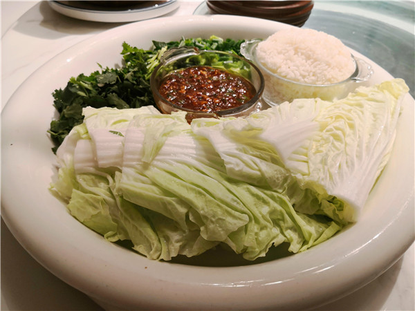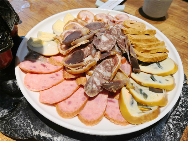 尤其扎眼的,正對大門的明廚亮灶上的幾塊牌匾,一下子就勾起人的食欲:老式熏豬手、手工燒老雞、烏蘇里江鰉魚、興凱湖大白魚、查干湖胖頭魚、火夫灶羊腿。這些都是地道的東北味??!據(jù)介紹,老板湯長明是黑龍江“龍菜”系傳承領(lǐng)軍人物,祖孫四代傳承東北菜廚藝,現(xiàn)在關(guān)東大院餐飲集團(tuán)董事長。當(dāng)然,許多大家耳熟能詳?shù)拇蟊姴艘矐?yīng)有盡有,如:殺豬菜、小雞燉蘑菇、得莫利燉魚、大鵝燉寬粉、黑皮肘子、酸菜粉、地三鮮、東北鹵水點(diǎn)豆腐、金湯遼參、黃魚燒土豆、紅燒肉黃金勾......看得人口水直冒。加之,整個(gè)門店的布局也十分特別,一樓明廚亮灶之外,主要是大堂散座,周邊還有不少的書籍、酒架;二樓主要是包間,簡潔明亮??梢哉f,在此可以感受到一股濃濃的關(guān)東風(fēng)情。