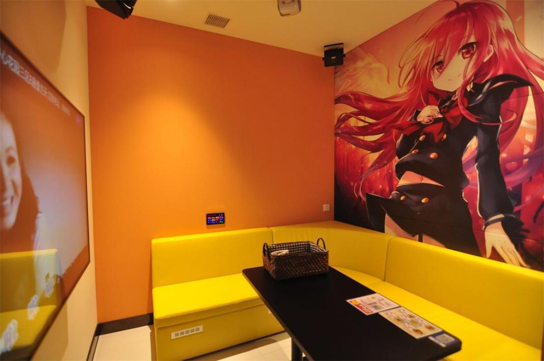 KARAOKE區(qū)域,卡拉OK包廂設(shè)有動(dòng)漫、和風(fēng)、美式風(fēng)等不同主題背景,客人可以按照個(gè)人喜好或心情選擇喜歡的房間。不同包廂有著風(fēng)格各異的投影和舞臺(tái),這里也可以舉辦生日會(huì)和公司社員團(tuán)建活動(dòng)。飲食區(qū)提供的披薩、熱狗、意大利面等小食和飲料都可以帶進(jìn)包廂,讓邊吃著美食邊舉行派對(duì)成為現(xiàn)實(shí)。