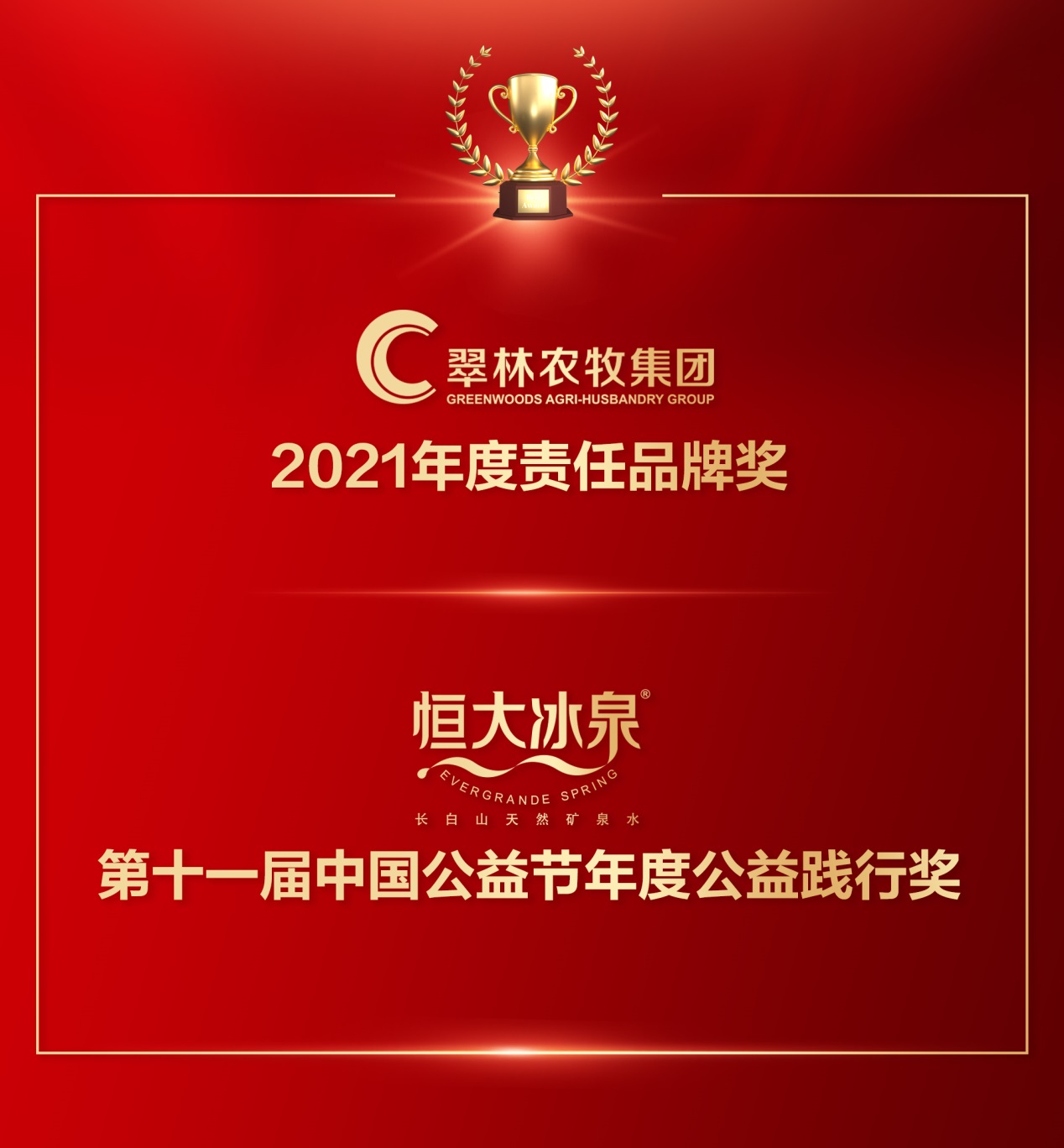 2021年,翠林農牧積極擔當企業(yè)責任,用實際行動體現(xiàn)了企業(yè)愛心,包括:翠林農牧旗下恒大冰泉積極響應深圳市關愛辦號召,為一線交警輔警捐贈低鈉水;在武漢解封一周年之際,向抗疫醫(yī)院捐贈恒大冰泉低鈉礦泉水1000箱;更有馳援廣佛抗疫,馳援河南水災等多項公益舉措,積極捐款捐物,踴躍開展各項捐贈活動。作為一家富有社會責任感的企業(yè),翠林農牧集團一直致力于為全社會樹立和宣傳慈善公益領域的榜樣,時刻將社會責任概念和公益發(fā)展理念融入品牌建設中。這也正是翠林農牧集團連續(xù)獲得“2021年度責任品牌獎”和“南粵慈善公益同行活動同行機構”兩項公益類大獎,旗下恒大冰泉榮獲“第十一屆中國公益節(jié)年度公益踐行獎”的主要原因。