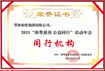 翠林農牧集團榮獲“南粵慈善公益同行活動同行機構”