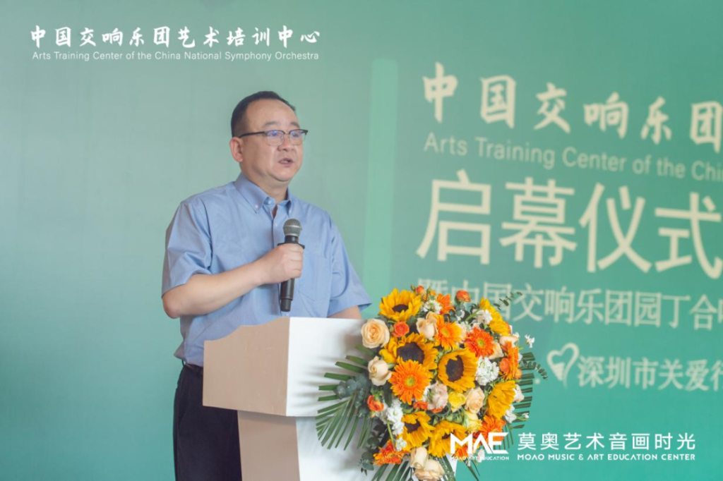 中國交響樂團(tuán)副團(tuán)長尹波、南山區(qū)文化廣電旅游體育局黨組成員、副局長任艷峰、中國交響樂團(tuán)藝術(shù)培訓(xùn)中心主任王曉柯、中國交響樂團(tuán)藝術(shù)培訓(xùn)中心深圳負(fù)責(zé)人韓仕英、華僑城歡樂時光項(xiàng)目負(fù)責(zé)人鄧皋峰、深圳市關(guān)愛行動基金會副秘書長魏平、莫奧藝術(shù)音畫時光校長王婷、莫奧藝術(shù)音畫時光行政總監(jiān)曹克等嘉賓出席了開幕儀式。