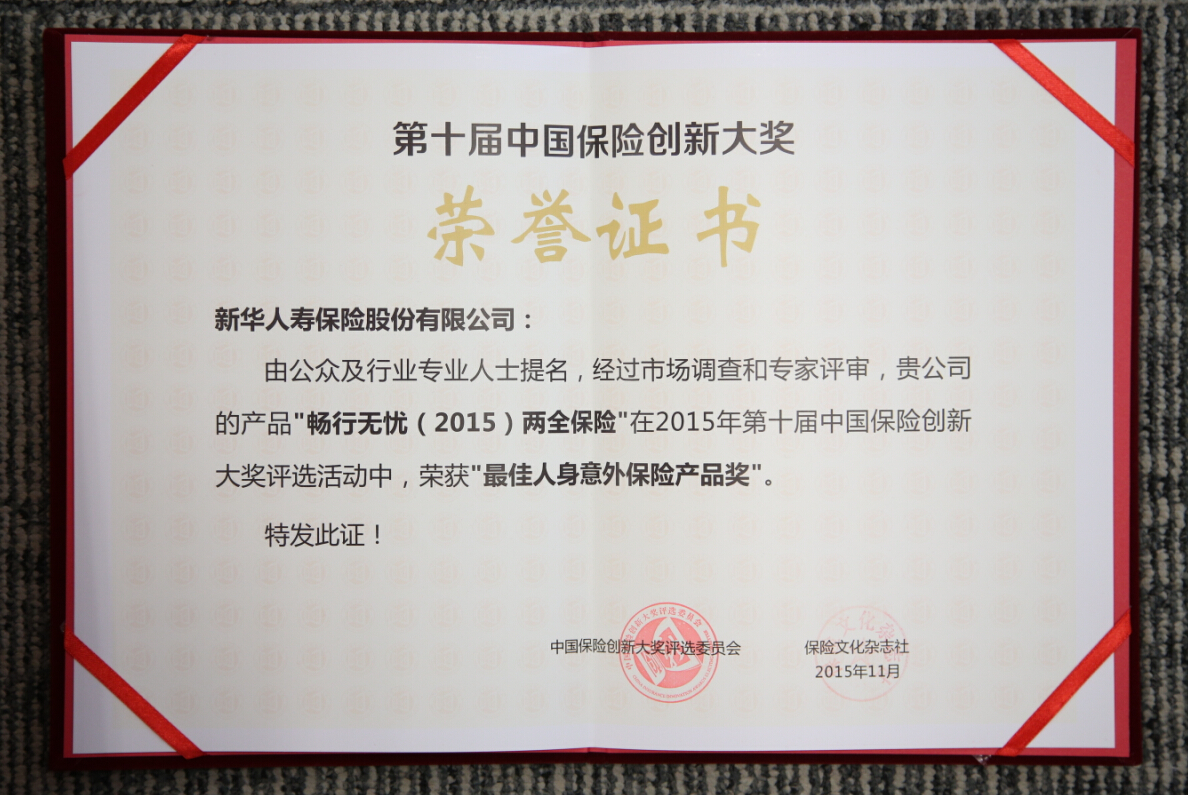 2015年最佳人身意外保險產(chǎn)品獎