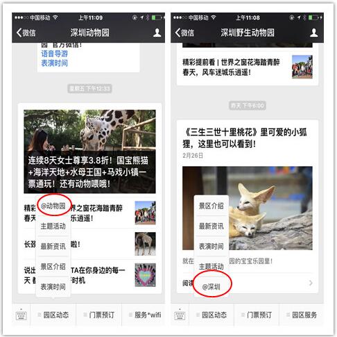 深圳野生動物園官方微信服務(wù)號與訂閱號俊入駐@深圳平臺。?