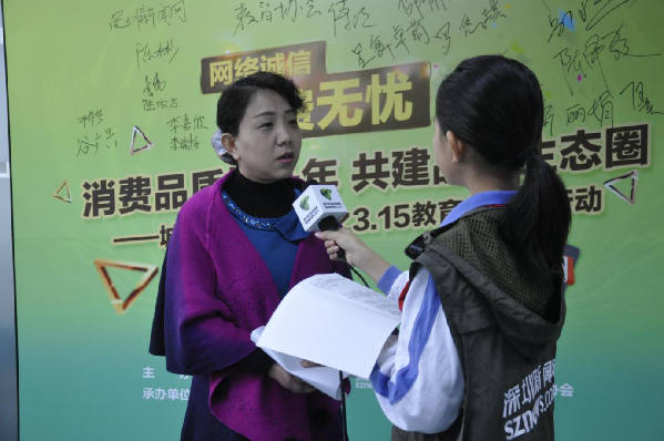 深網(wǎng)小記者現(xiàn)場(chǎng)采訪深圳市消費(fèi)者委員會(huì)投訴部部長(zhǎng)靳麗娟