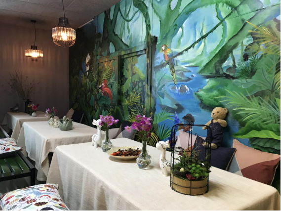 還有那漫山遍野的鮮花和蔬菜,是這個花園里最美的風(fēng)景線,還有那清晨中薄薄的霧,和那湛藍的天空,給這個花園做了最棒的裝飾,跟著香味,我走進了一個童話房門,墻壁上畫滿了森林和動物,桌子上擺滿了各式各樣的小燈,瓶子和香氣撲鼻的鮮花、干花,香極啦!看著這仙境般的地方,臉上總會不由自主地浮起笑容!
