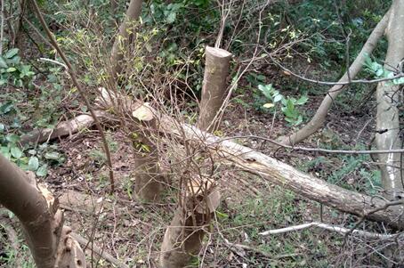 5月6日,有市民在深圳論壇發(fā)帖反映位于寶安的應(yīng)人石后山野生沉香林被盜砍。他還表示,早在2014年3月,西麗大磡村后山同樣發(fā)現(xiàn)有野生沉香林遭到破壞。該市民呼吁有關(guān)部門(mén)重視野生沉香盜伐情況,對(duì)深圳市野生沉香資源進(jìn)行有效保護(hù)。(問(wèn)政帖文:《石巖應(yīng)人石背后山上大量野生土沉香被破壞、砍伐》)
