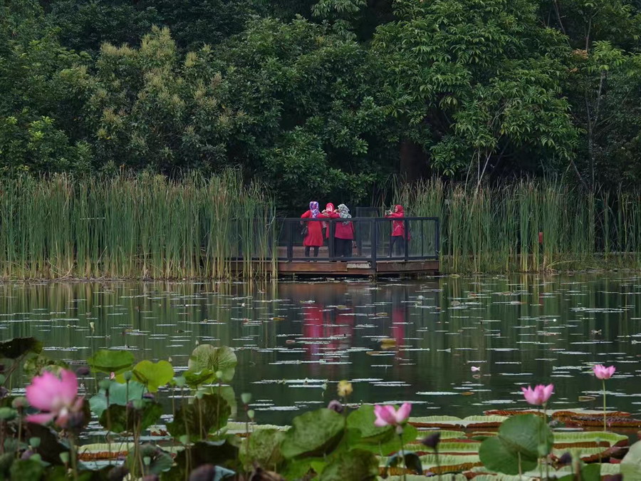 面積約100公頃,包括池沼、庭園、小丘等。園內(nèi)劃分為蓮花池、棕櫚屬、蔓生植物、竹林、藤類、蘭花科、仙人掌科、羊齒類等種植區(qū),種植著從印尼各地和世界各地引進(jìn)的1萬多種樹木,有4000多屬科,還有50多萬種植物標(biāo)本。李仁奇攝