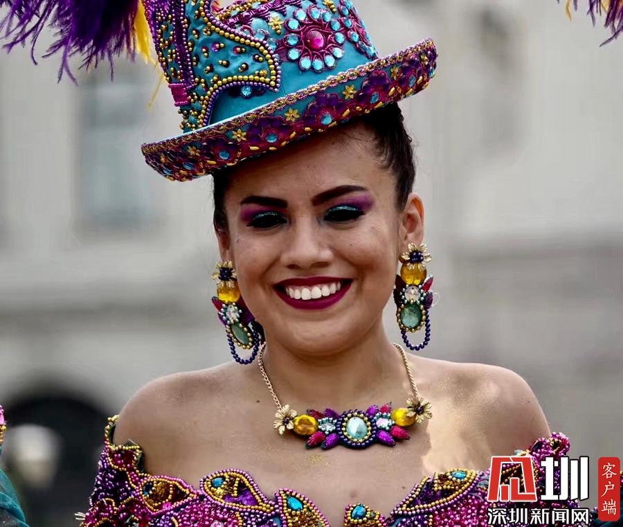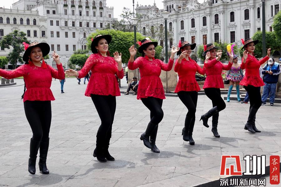 市中心武器廣場幾支中老年拉丁舞蹈隊艷麗的化妝和特色鮮明的民族服裝吸引著眾多的游客。李仁奇攝
