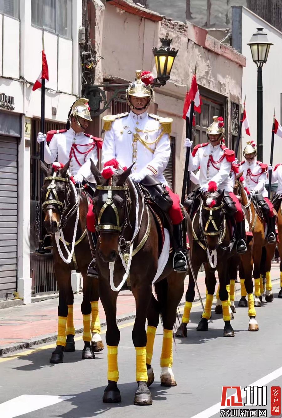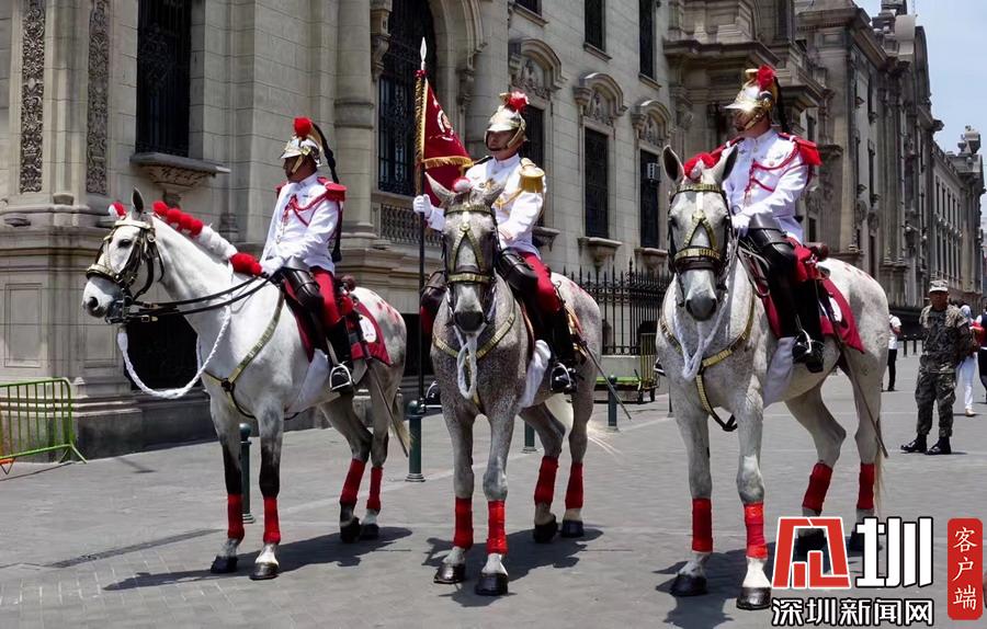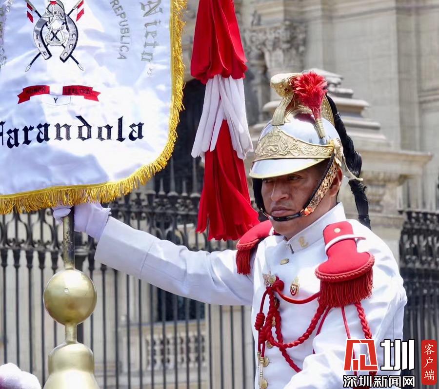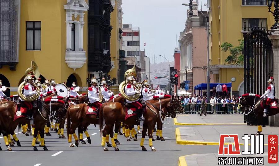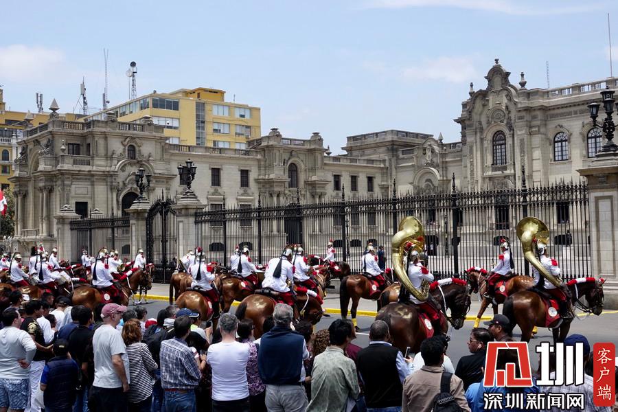 可能也與秘魯民俗有關(guān),秘魯國家軍樂隊也會同時在利馬總統(tǒng)府門前廣場公開盛裝演練,市民都可以近距離觀賞。李仁奇攝
