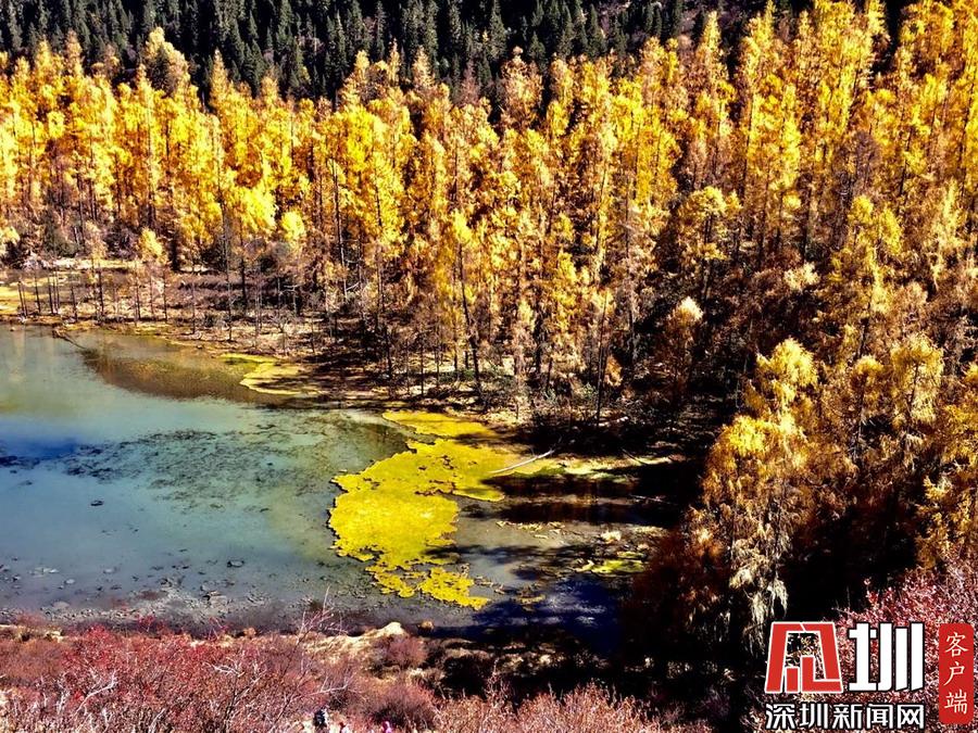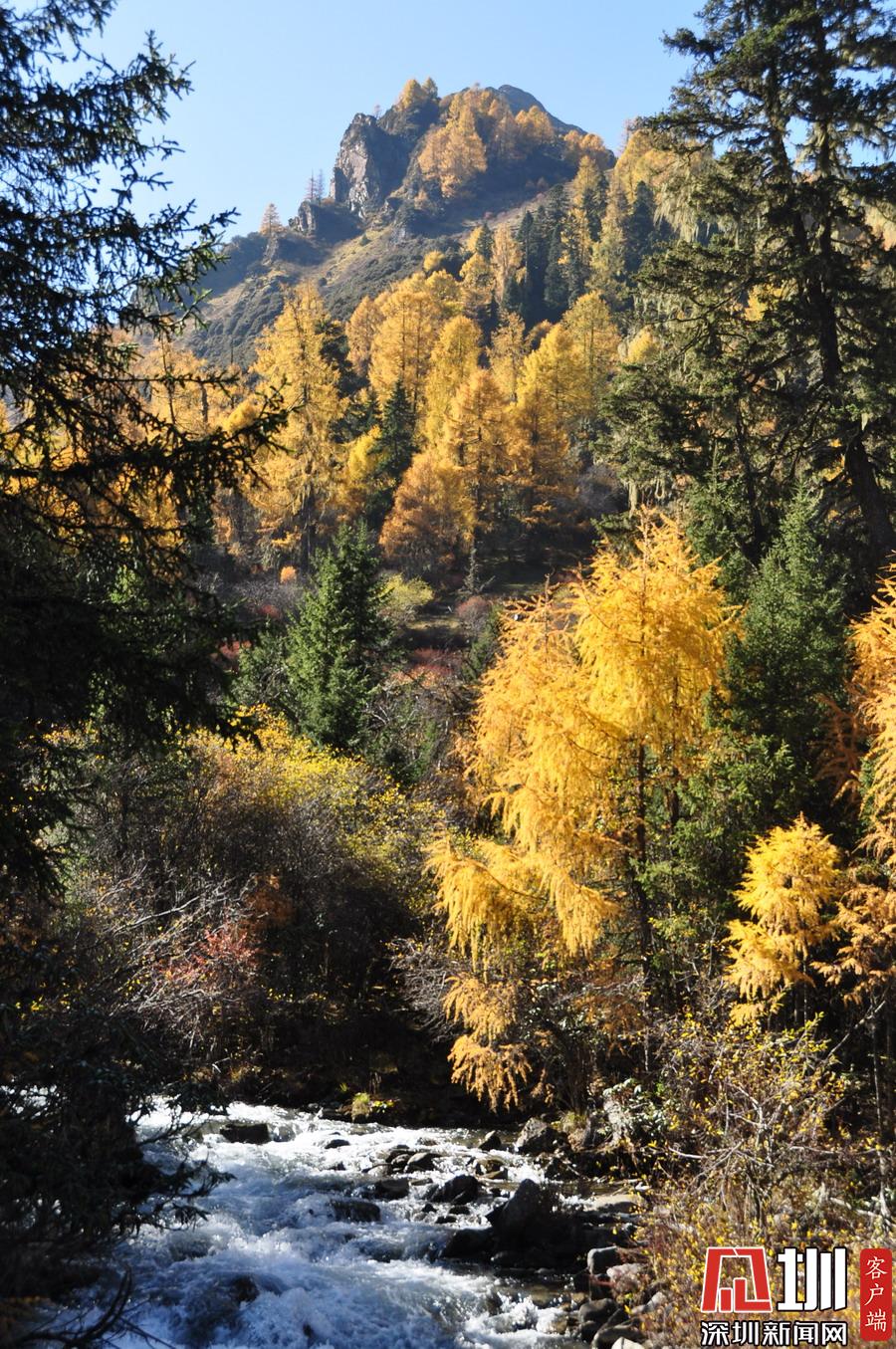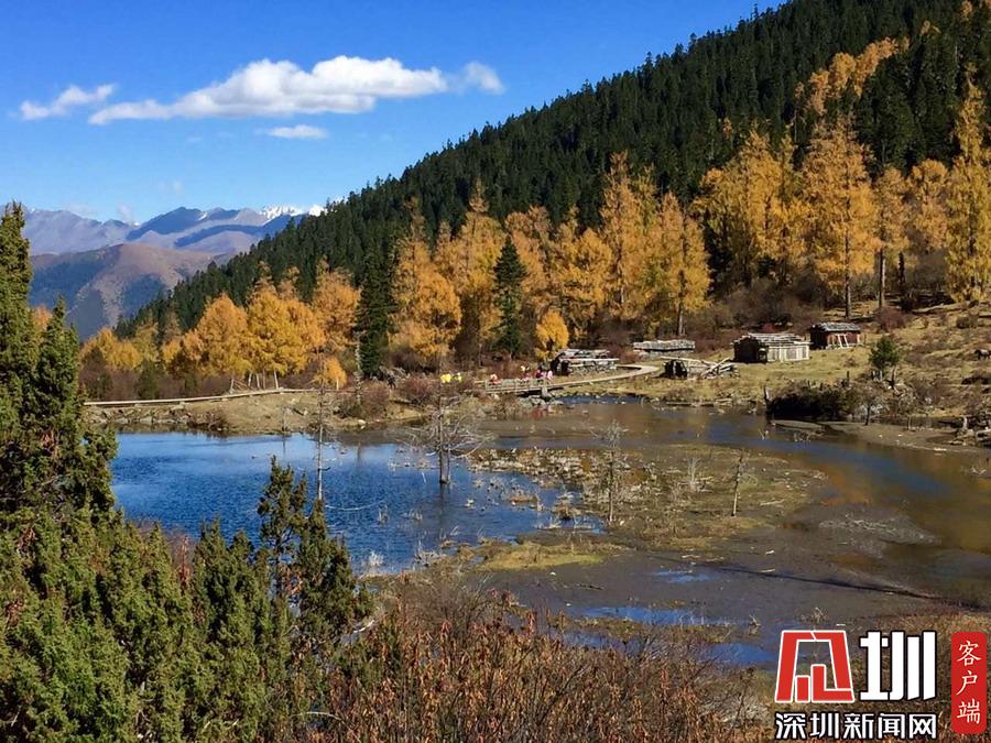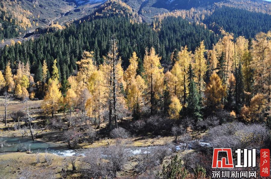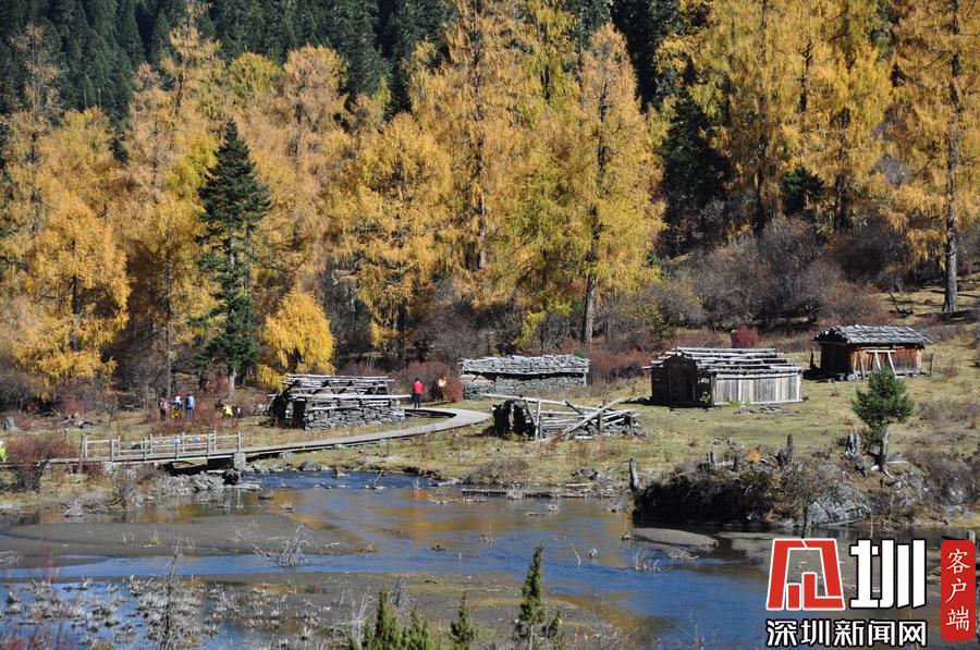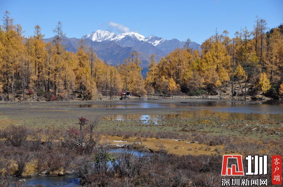 溝里有大片的落葉松、杜鵑和云杉林,雪山、海子、濕地、河流等景觀應(yīng)有盡有,唯獨(dú)沒(méi)有公路,只能沿木棧道徒步游覽。李仁奇攝