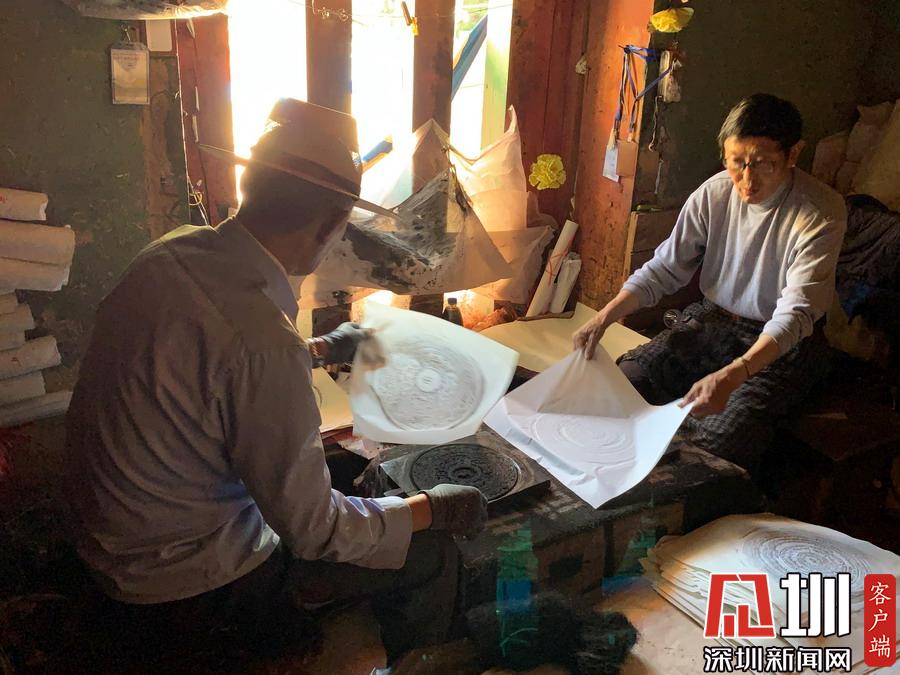 德格印經(jīng)院的印刷工藝大體可分裁紙、顏料加工、印刷、裝訂四個流程。又可細分裁紙、泡紙、兌墨、研磨、兌制朱砂、取版、印刷、晾曬、洗版、歸庫、分頁、核對、裝訂、打磨、刷色邊、包裝等十余道工序。李仁奇攝