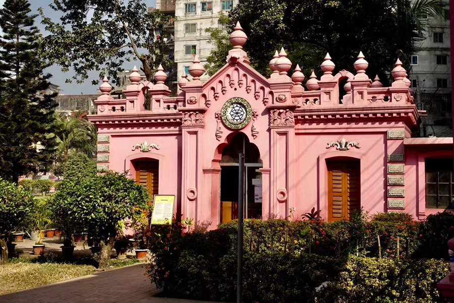 距孟加拉恒河渡口不遠的地方有一座粉紅色宮殿式的豪華建筑。那是1872年一位名叫阿赫桑曼濟勒的地主在法國人留下的倉房基礎上改建的私邸,后來曾在一次龍卷風襲擊時受創(chuàng)。李仁奇 攝