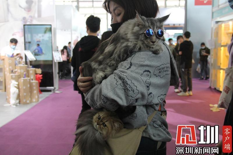 觀眾帶著寵物貓一起逛展。