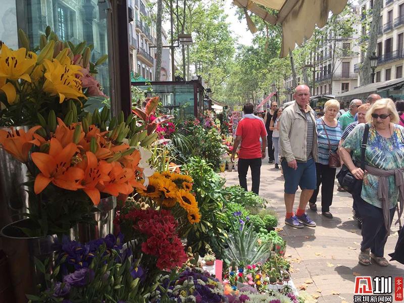 這條街連接著老城區(qū)加泰羅尼亞廣場(chǎng)和哥倫布紀(jì)念碑廣場(chǎng)兩個(gè)主要景點(diǎn),每天游人如織。圖為蘭布瑯花街。李仁奇 攝