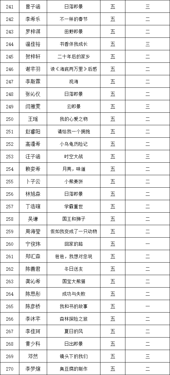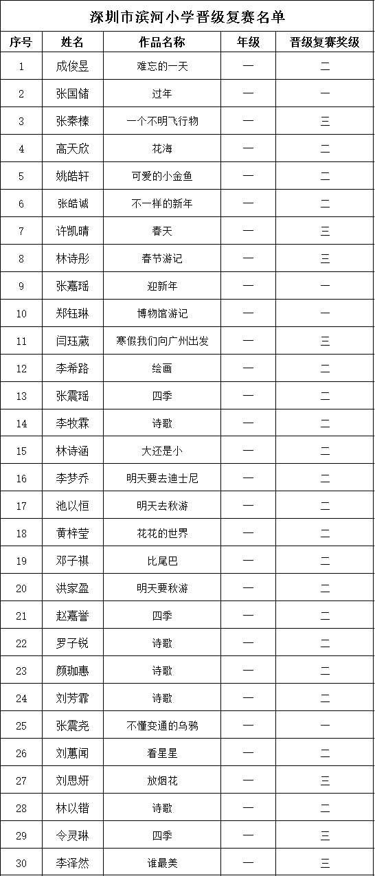 自2021年1月,活動(dòng)征稿啟動(dòng)以來,獲得了深圳市廣大中小學(xué)生、教師、文學(xué)愛好者的熱烈響應(yīng)積極參與,吸引了深圳百余所學(xué)校的上萬人關(guān)注報(bào)名?,F(xiàn)公布深圳市濱河小學(xué)校園專場(chǎng)晉級(jí)復(fù)賽名單如下: