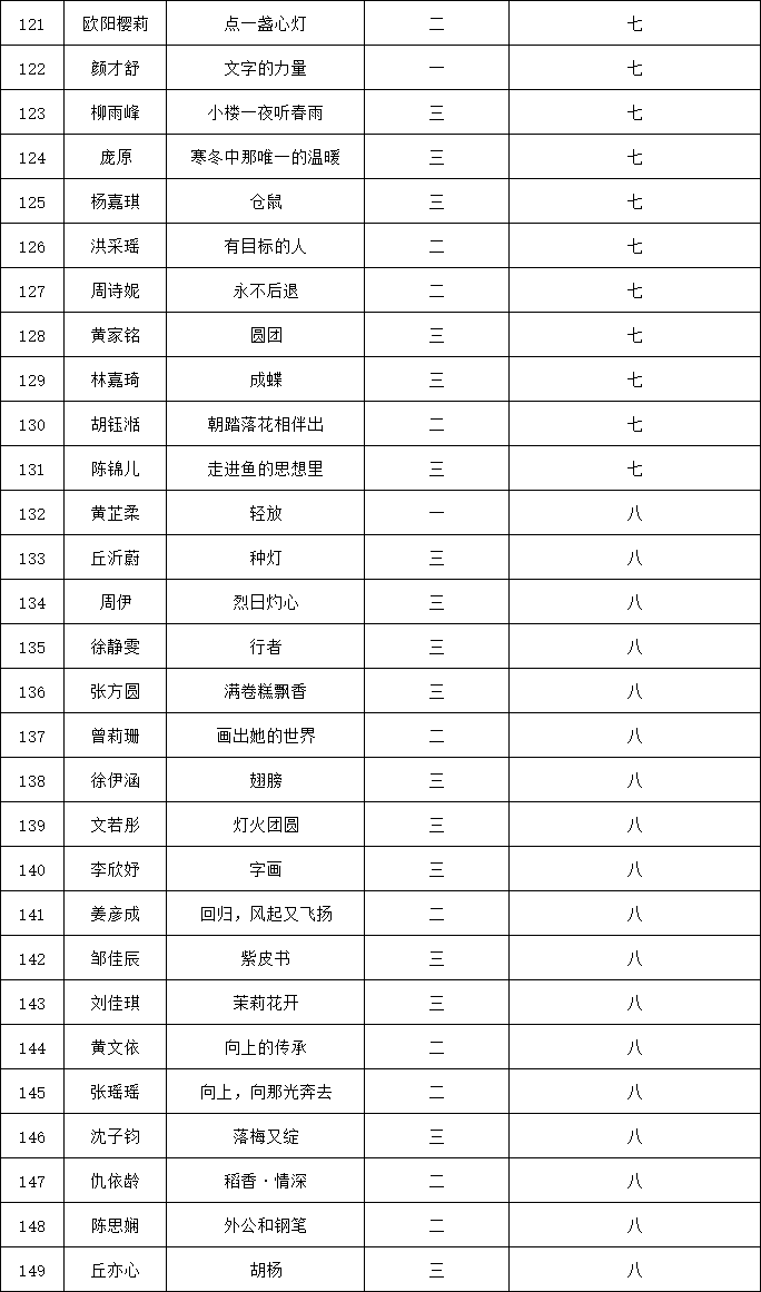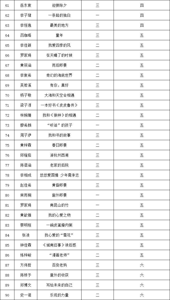 自2021年1月,活動(dòng)征稿啟動(dòng)以來(lái),獲得了深圳市廣大中小學(xué)生、教師、文學(xué)愛(ài)好者的熱烈響應(yīng)積極參與,吸引了深圳百余所學(xué)校的上萬(wàn)人關(guān)注報(bào)名?,F(xiàn)公布福田區(qū)明德實(shí)驗(yàn)學(xué)校碧海校區(qū)專場(chǎng)晉級(jí)復(fù)賽名單如下: