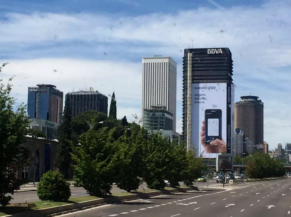 馬德里不像巴塞羅那那樣擁擠熱鬧,街道寬闊、建筑漂亮、市容整潔、綠樹成蔭。街道馬路上行人車輛都較少。李仁奇 攝