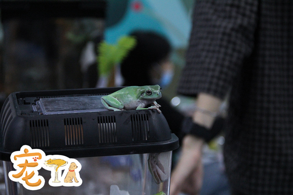 異寵展示區(qū)的工作人員在向觀眾介紹飼養(yǎng)蛇的注意事項(xiàng)。