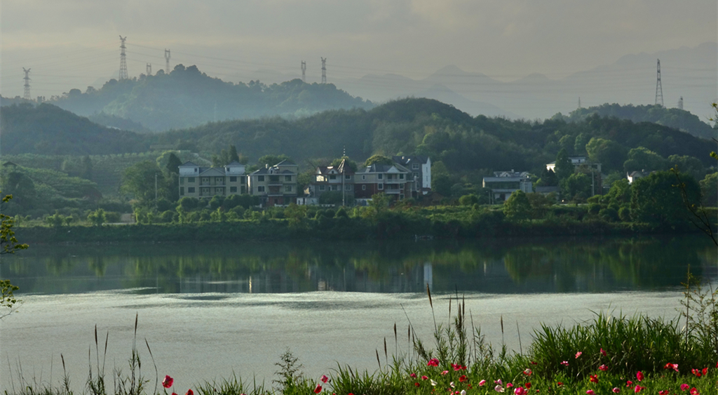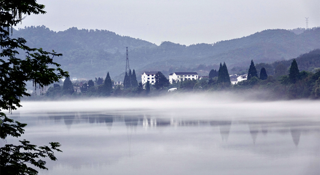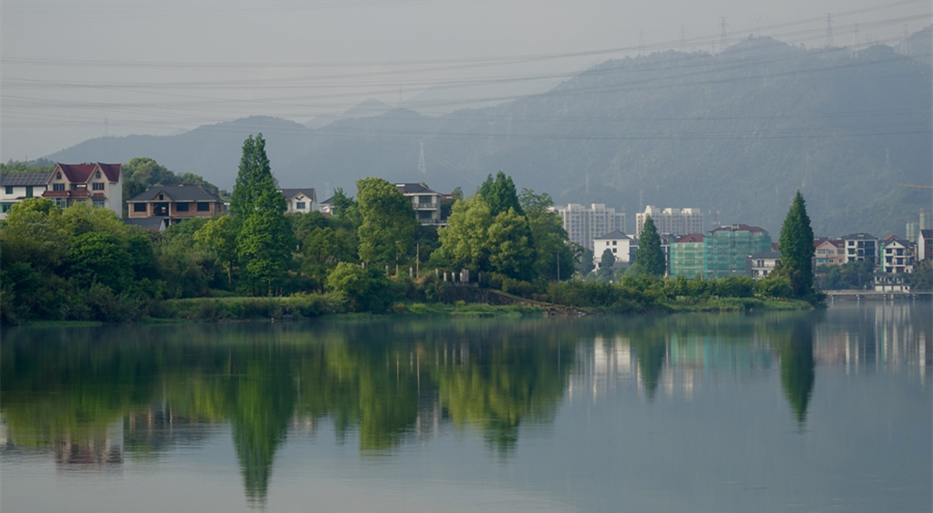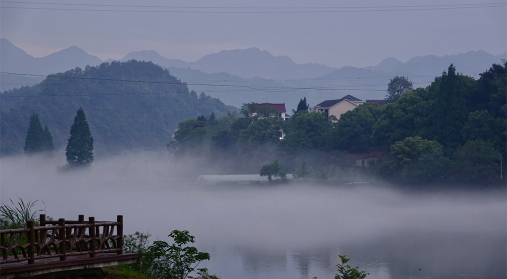 煙霧繚繞,江邊的庭院若隱若現(xiàn)。李仁奇 攝