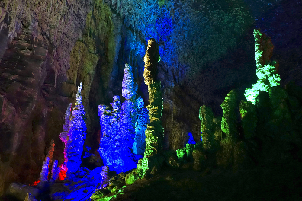 目前已探測長度為10.5公里,上下共分四層。洞廳多呈長廊狀和大廳狀。李仁奇 攝