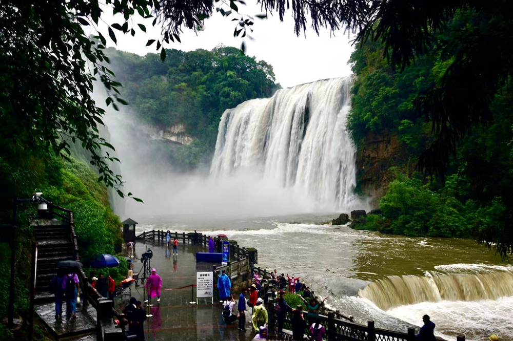 黃果樹(shù)瀑布的游客數(shù)以萬(wàn)計(jì),但是能夠在豐水期觀賞到特別壯觀景象的游客卻是少數(shù)。李仁奇 攝