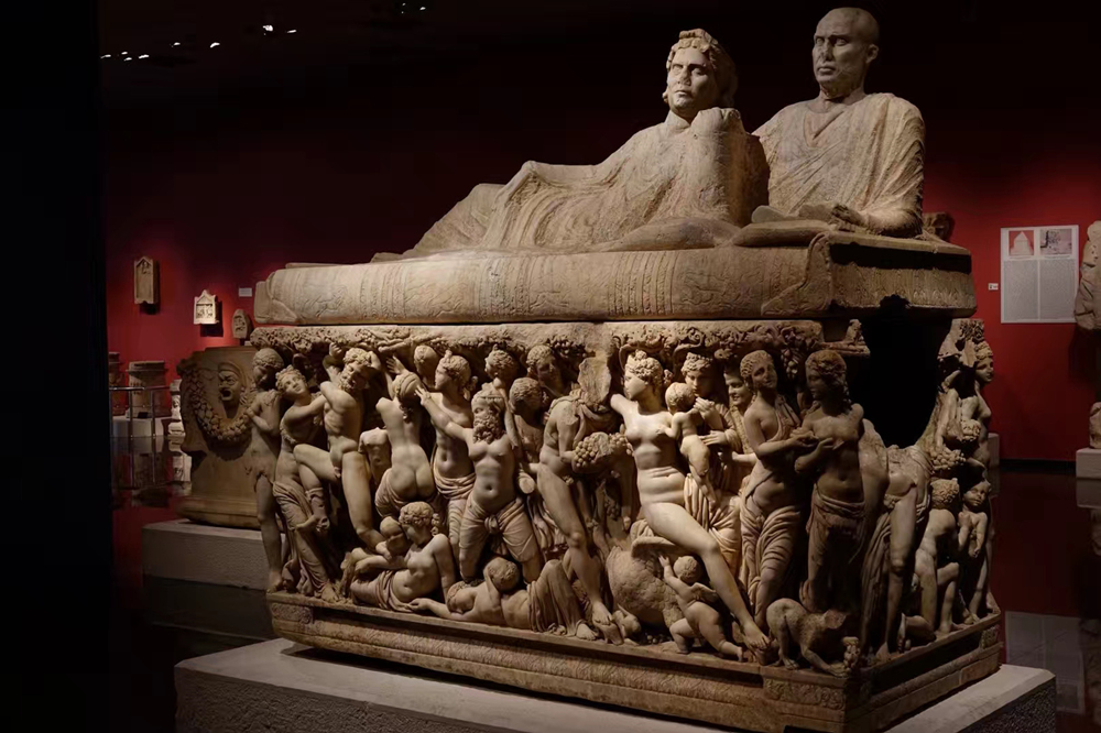 狄奧尼索斯石館。側(cè)立面是眾神狂歡圖,下方還有小愛神丘皮特。李仁奇 攝