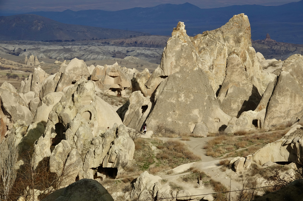 經(jīng)過十多個世紀(jì)的風(fēng)化和天然侵蝕,形成十分顯著的筍狀石柱和煙囪狀的石巖,環(huán)繞著古老的村莊和一系列的山脈,蔚為壯觀。李仁奇 攝