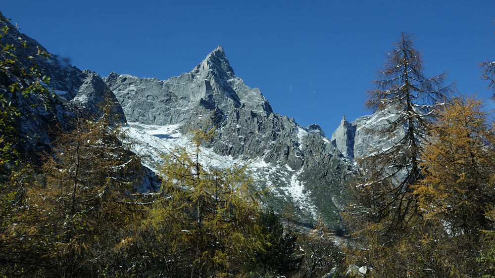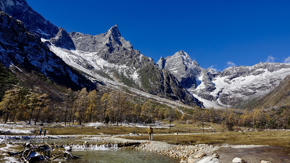 景區(qū)內紅葉、杜鵑花種類繁多,森林原始、瀑布飛掛、冰川奇特,四季皆有看點,尤以深秋時節(jié)的絢麗多姿聞名,被比作四姑娘山的美麗背影。李仁奇 攝