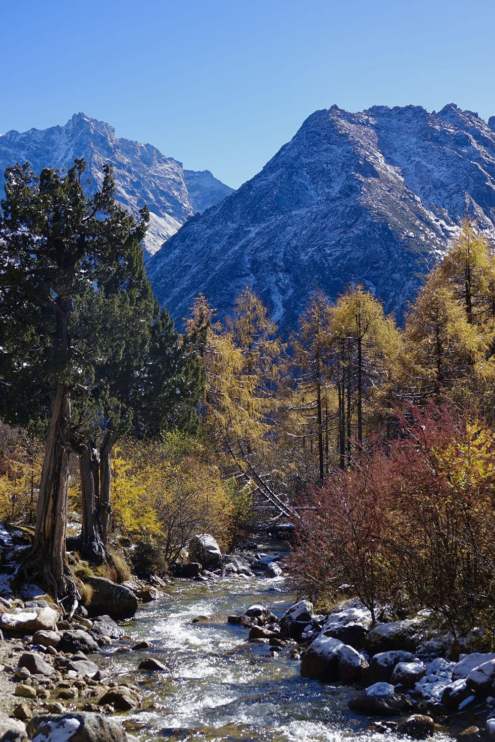從雪山上流淌下來的小溪,在雪山和藍天的映襯下,分外漂亮。李仁奇 攝