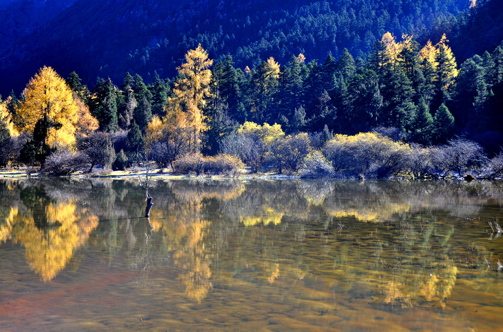畢棚溝的湖泊倒影就是一個鏡像世界。李仁奇 攝