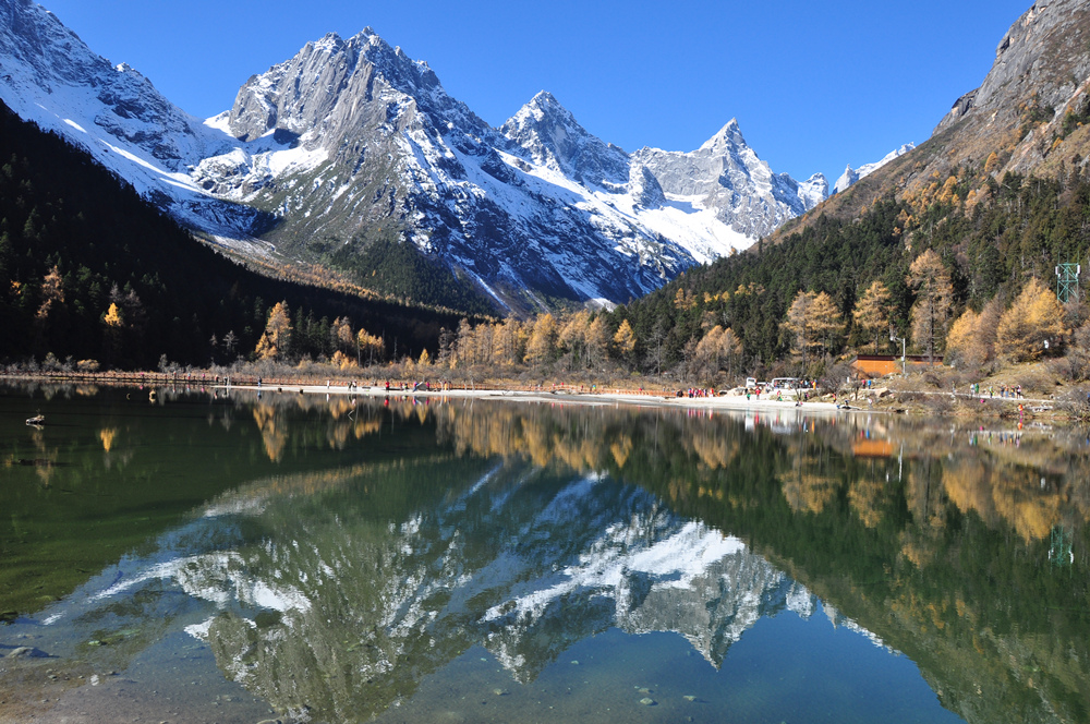 四姑娘山俏麗的身影倒映在天際湖內,此等美景入詩入畫。李仁奇 攝