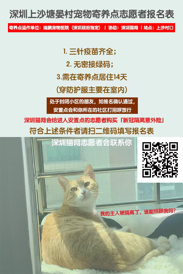 3月17日,深圳福田區(qū)正式官宣,根據(jù)疫情防控需要,對上沙塘晏村部分區(qū)域居民以家庭為單位異地集中健康監(jiān)測14天。同時,也對居民寵物也有了妥善的安排,小型寵物可攜帶陪同,對于不能攜帶的寵物,啟用“愛心驛站”進(jìn)行免費(fèi)托管。