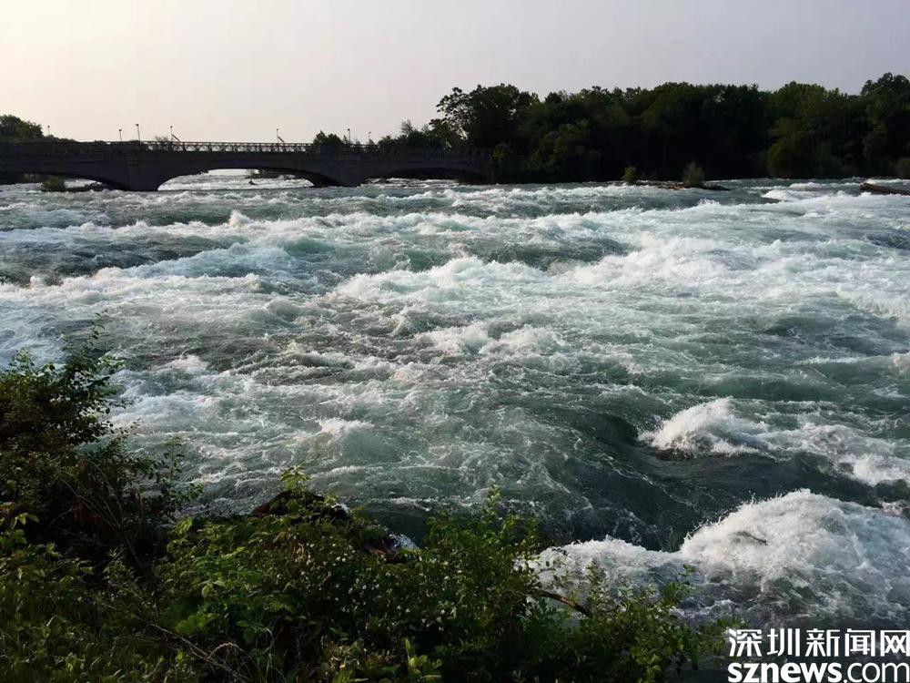 尼亞加拉河河水洶涌澎湃,水花翻滾著如翡翠一般。李仁奇 攝