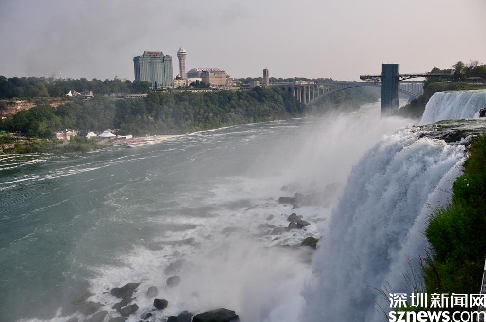 在美國一側(cè)的尼亞加拉瀑布城鮮有臨河的高樓大廈,最高的建筑是塞內(nèi)卡尼亞加拉大賭場和酒店。李仁奇 攝