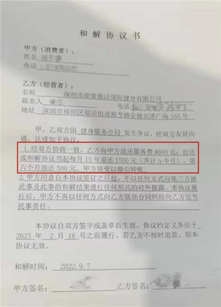 投訴對(duì)象:深圳市能量激活國際健身有限公司