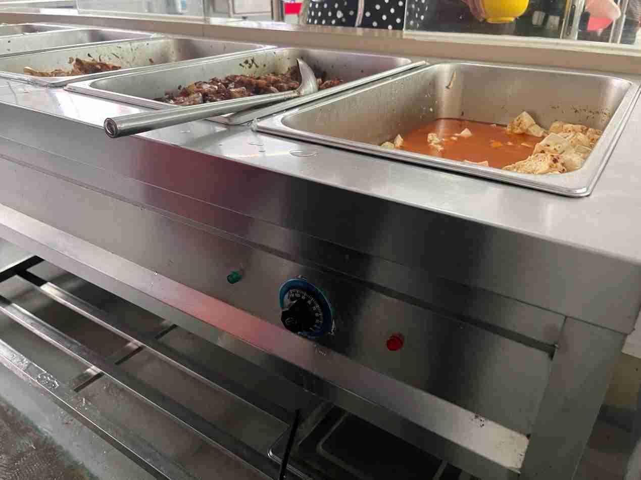 執(zhí)法人員也對后廚的設(shè)施進(jìn)行了細(xì)致檢查。在檢查消毒柜時,執(zhí)法人員發(fā)現(xiàn)該消毒柜未連通電源,對存放在其中的餐具起不到消毒的作用;而在配餐間,存放菜品的保溫池也并未接通電源,執(zhí)法人員稱,若保溫池不接通電源,菜品的中心溫度極有可能無法保持在70°以上,容易滋生細(xì)菌,造成食物中毒。