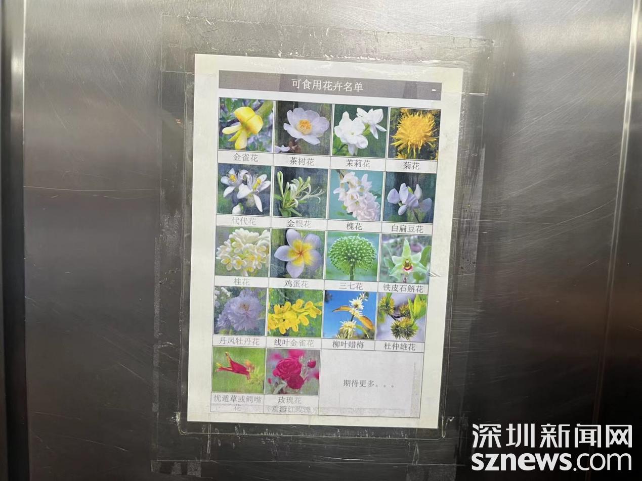 后廚分為預(yù)處理區(qū)、操作區(qū)、冷食專間、留樣區(qū)、糕點間、洗消區(qū)等區(qū)域。在后廚操作區(qū),執(zhí)法人員隨機(jī)查看調(diào)料標(biāo)簽,均在保質(zhì)期內(nèi);冰箱食材貼有相應(yīng)標(biāo)簽,且表面特別張貼了“可食用花卉名單”。專間內(nèi),冰柜中食材均有相應(yīng)標(biāo)簽,且分區(qū)域存儲,無混放現(xiàn)象;留樣冰箱中的樣品重量、時間、標(biāo)簽及臺賬記錄均符合要求。