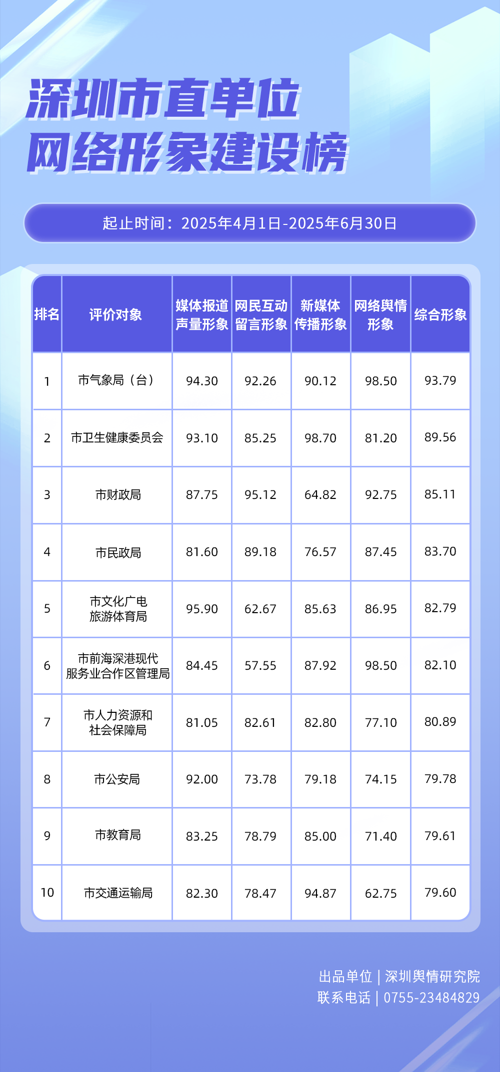 為全面評(píng)估深圳各區(qū)各單位網(wǎng)絡(luò)形象建設(shè)情況,助力各區(qū)各單位持續(xù)響應(yīng)居民對(duì)美好生活的期許,賦能城市高質(zhì)量發(fā)展,深圳輿情研究院推出“深圳各區(qū)各單位網(wǎng)絡(luò)形象建設(shè)榜”,從網(wǎng)絡(luò)聚合聲量、留言互動(dòng)成效、社會(huì)生活評(píng)價(jià)、輿情管理能力及新媒體傳播水平等方面,多維度分析深圳各區(qū)(含大鵬新區(qū)、深汕特別合作區(qū))、各市直單位(市直屬單位、直屬部門(mén))的網(wǎng)絡(luò)形象建設(shè)成果,凸顯各區(qū)各單位的“共性”與“個(gè)性”。