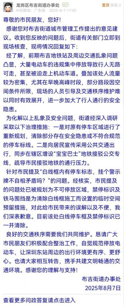良好的交通秩序需要我們共同維護(hù)。懇請(qǐng)廣大市民朋友們積極配合整治工作,自覺(jué)規(guī)范停放電動(dòng)車(chē),讓深圳東站周邊的出行環(huán)境更有序、更舒心。也請(qǐng)大家相互轉(zhuǎn)告,攜手共建文明暢通的交通環(huán)境。感謝您的理解與支持!