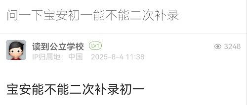 2. 帖文《問(wèn)一下寶安初一能不能二次補(bǔ)錄》