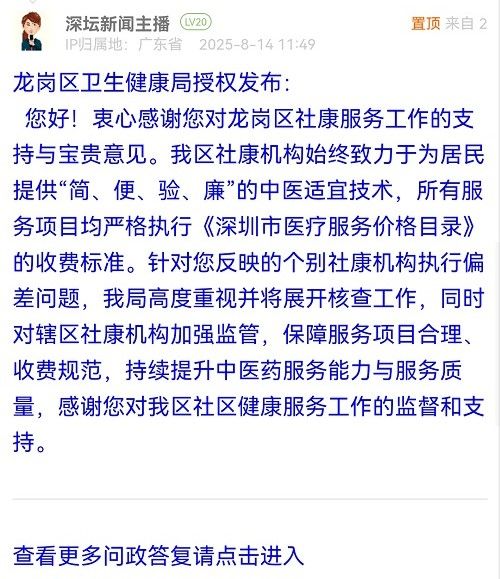 您好!衷心感謝您對(duì)龍崗區(qū)社康服務(wù)工作的支持與寶貴意見。我區(qū)社康機(jī)構(gòu)始終致力于為居民提供“簡、便、驗(yàn)、廉”的中醫(yī)適宜技術(shù),所有服務(wù)項(xiàng)目均嚴(yán)格執(zhí)行《深圳市醫(yī)療服務(wù)價(jià)格目錄》的收費(fèi)標(biāo)準(zhǔn)。針對(duì)您反映的個(gè)別社康機(jī)構(gòu)執(zhí)行偏差問題,我局高度重視并將展開核查工作,同時(shí)對(duì)轄區(qū)社康機(jī)構(gòu)加強(qiáng)監(jiān)管,保障服務(wù)項(xiàng)目合理、收費(fèi)規(guī)范,持續(xù)提升中醫(yī)藥服務(wù)能力與服務(wù)質(zhì)量,感謝您對(duì)我區(qū)社區(qū)健康服務(wù)工作的監(jiān)督和支持。