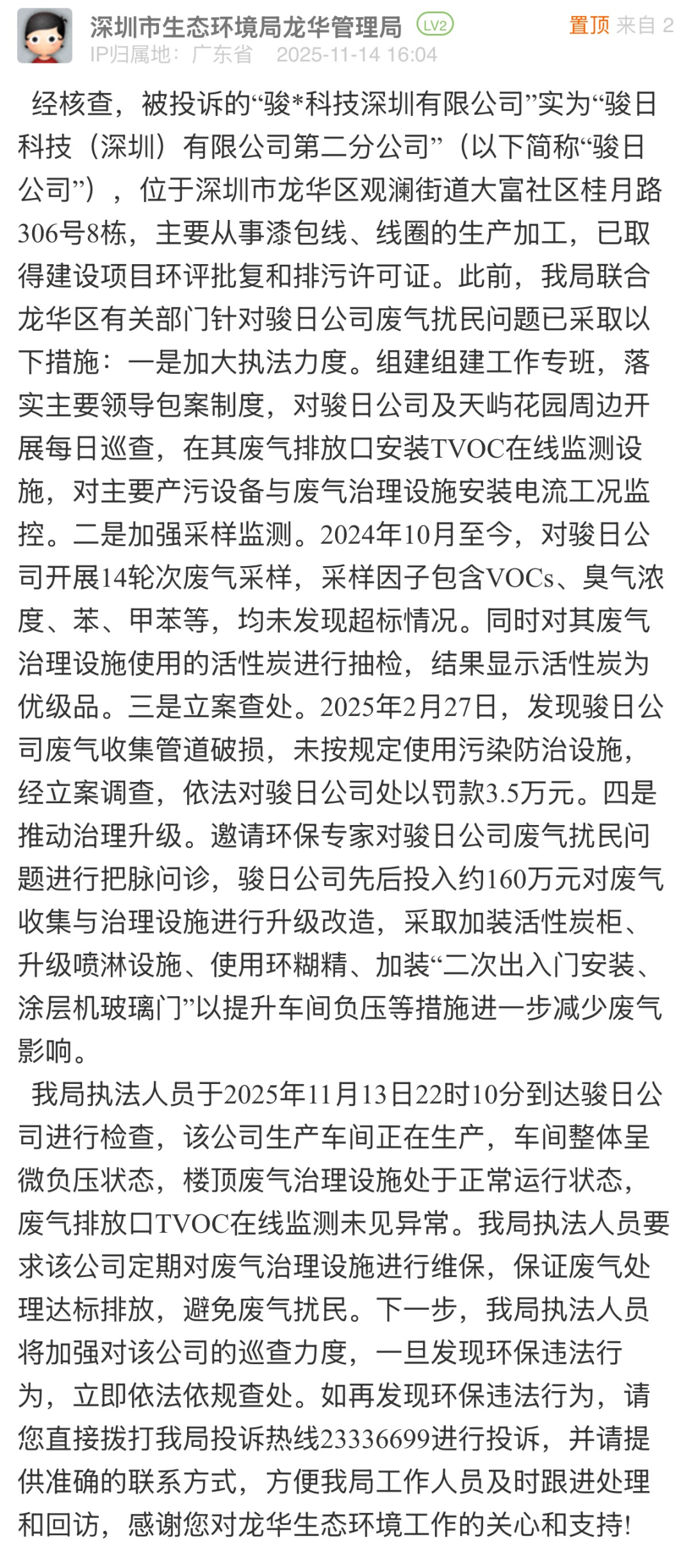 優(yōu)化建議:針對(duì)市民反映的工業(yè)廢氣擾民問(wèn)題,相關(guān)部門(mén)雖采取巡查監(jiān)測(cè)、立案查處、推動(dòng)設(shè)備升級(jí)等舉措,但未能實(shí)質(zhì)性化解居民困擾。在該問(wèn)政網(wǎng)帖的評(píng)論區(qū),有多位業(yè)主留言反映,近一年來(lái)“天天聞到臭氣”,并對(duì)“采樣均未發(fā)現(xiàn)超標(biāo)情況”的回復(fù)表示質(zhì)疑。建議相關(guān)部門(mén)在依托專(zhuān)業(yè)設(shè)備檢測(cè)的同時(shí),結(jié)合居民“嗅辨”反饋開(kāi)展精準(zhǔn)溯源,切實(shí)回應(yīng)群眾對(duì)清新環(huán)境的基本訴求,推動(dòng)治理從“數(shù)據(jù)達(dá)標(biāo)”轉(zhuǎn)向“群眾滿(mǎn)意”。