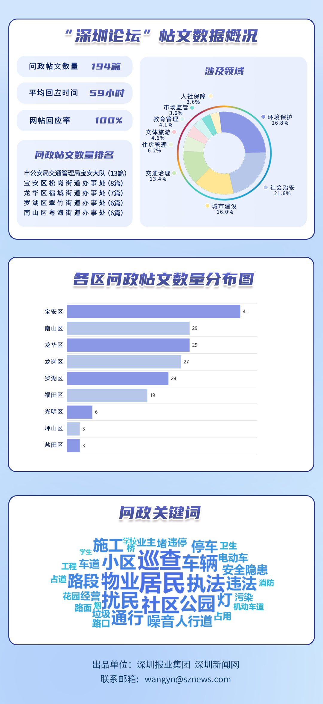 為探尋媒體如何精準(zhǔn)賦能基層治理現(xiàn)代化的“深圳路徑”,深圳報業(yè)集團正式掛牌成立“問政深圳”工作室,旨在進一步推動網(wǎng)絡(luò)問政工作的高效開展。為確保相關(guān)工作更加契合實際需求,深圳報業(yè)集團深圳新聞網(wǎng)按照“最快速度辦結(jié)”的總體要求,將原有月度榜單創(chuàng)新升級為“問政深圳紅黑榜”,并對評分體系進行了細致優(yōu)化。該榜單從答政量、回應(yīng)率、響應(yīng)時效及解決成效等多個維度,對深圳各級黨政機關(guān)及公共企事業(yè)單位進行答政實效評議,力求打造政府與媒體攜手共進、創(chuàng)新基層治理現(xiàn)代化的新樣板,從而更好地回應(yīng)人民群眾對美好生活的熱切期盼。