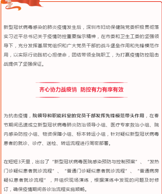 “婦女、兒童抵抗力比較弱,所以母嬰疫情防控工作更加顯得尤為重要。我們是全市婦幼的’龍頭’單位,不僅要做好全院的疫情防控工作,還承擔(dān)著向全市提供為母嬰健康保駕護(hù)航的指引工作,作為醫(yī)務(wù)人員我們更是責(zé)無(wú)旁貸要做好本職工作。“賴碧娟告訴記者,深圳市婦幼保健院是全市49家發(fā)熱門(mén)診之一,作為全市唯一一家婦幼三甲專(zhuān)科醫(yī)院,該院承擔(dān)著更多在特殊時(shí)期為母嬰健康與安全保駕護(hù)航的作用。